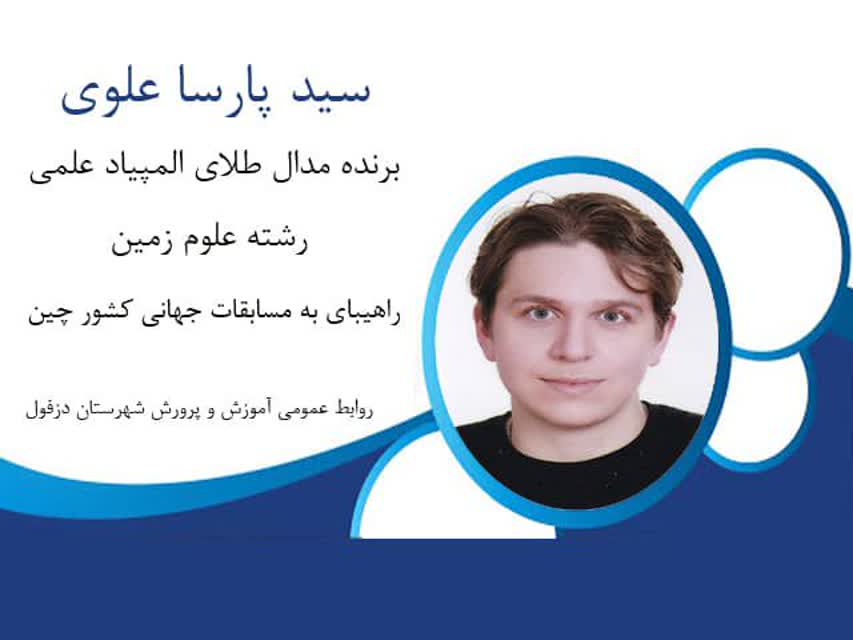 وی در همین خصوص افزود: سال هاست که استان خوزستان از دریافت مدال طلای المپیاد های علمی محروم بوده که امسال با درخشش سید پارسا علوی در رشته علوم زمین این افتخار نصیب استان خوزستان و شهرستان دزفول شد.